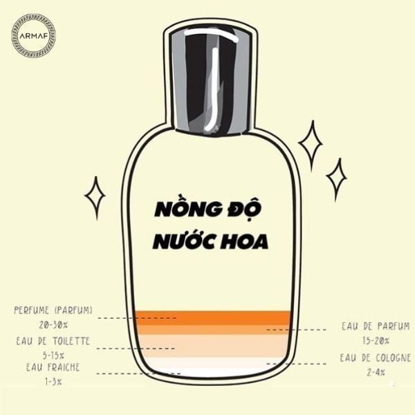 - Parfum: Nồng độ cao nhất, lưu hương cả ngày chỉ với 1 - 2 lần xịt.