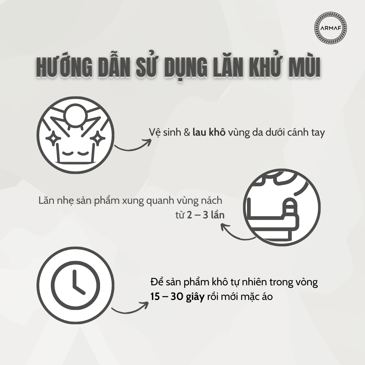 • Cách sử dụng: Đầu tiên, vệ sinh sạch sẽ và lau khô vùng da dưới cánh tay. Tiếp theo, lăn nhẹ sản phẩm xung quanh vùng nách từ 2 – 3 lần. Để sản phẩm khô tự nhiên trong vòng 15 – 30 giây rồi mới mặc quần áo.
